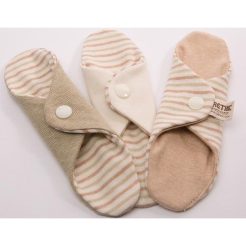 a patented polyester-free built-in inner layer which is also water-proof and breathable. They are really soft and comfortable to wear too! The outside is 100% organic colored cotton.